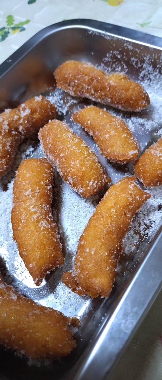 良い感じの茶色🤎になったら、油から、ドーナツをあげて、グラニュー糖にまぶせば、完成です!