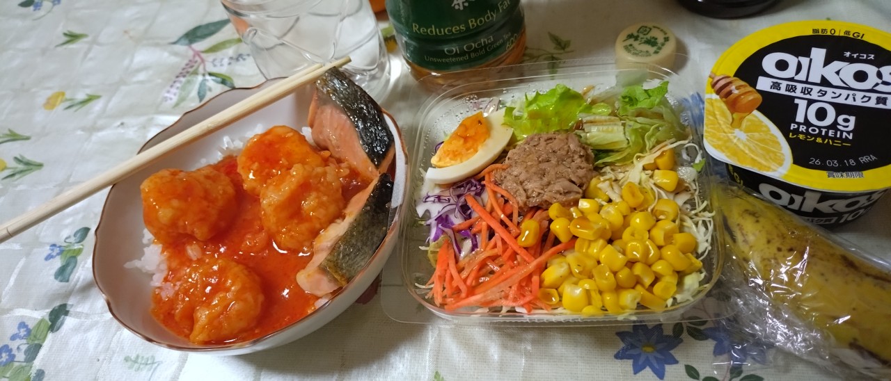バナナ🍌二分の一、オイコスヨーグルト、サラダ🥗美味しかったです。