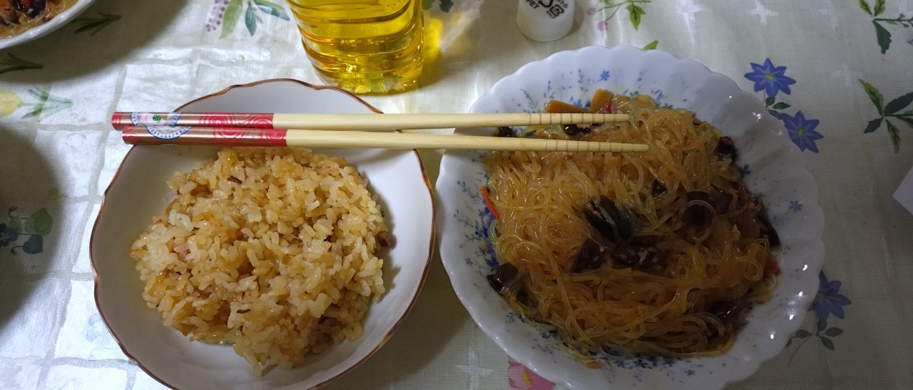 ご飯。豚汁。しめじとエリンギの佃煮。 ヨーグルト。冷食2個。麦茶。牛乳🥛。 以上。