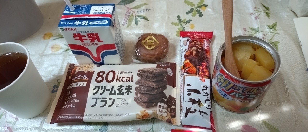 ご飯。豚汁。しめじとエリンギの佃煮。 ヨーグルト。冷食2個。麦茶。牛乳🥛。 以上。