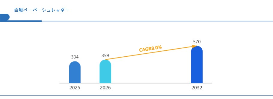 2021年~2025年の実績データと、2026年~2032年の予測データに基づき、自動ペーパーシュレッダー市場の規模、成長率、構造変化を定量的に評価します。中長期的な事業戦略や投資判断の基盤として活用可能です。