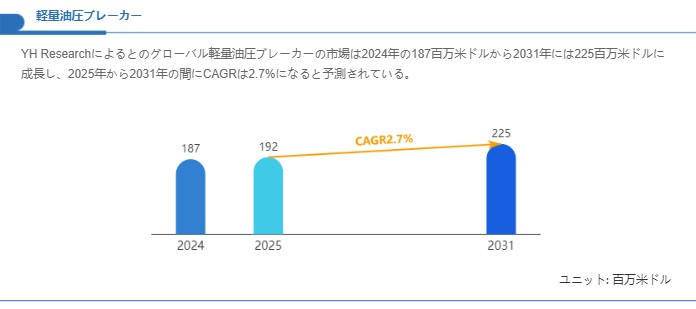 市場規模の見通しに関しては、既存の市場推計を基にすると、当該セグメントは短中期的に穏やかな成長を辿ると評価できます。YH Researchの提示する推計によれば、本市場は2024年におよそ1億8,700万米ドルの規模に位置付けられており、技術置換と用途の安定化を背景に2031年には約2億2,500万米ドルへと拡大するとの見通しが示されています。これを年平均成長率で換算すると、2025年から2031年にかけて年率約2.7%の成長に相当する算定となります。こうした成長は、都市部での維持修繕需要の継続性と、狭小現場対応のための軽量化・静音化など製品改良の進展によって支えられると考えられます。