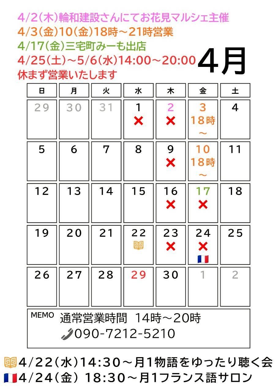 26年4月のカレンダー