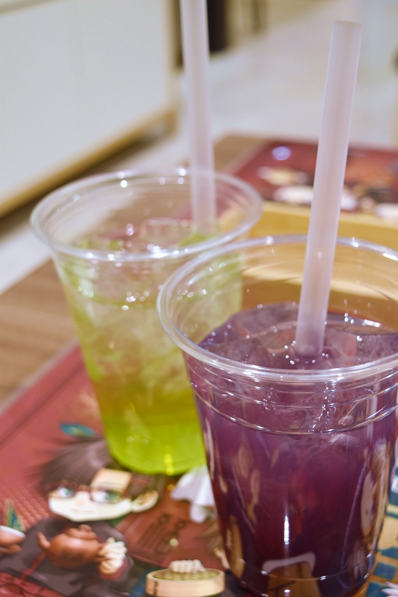 ドリンクは三蔵の「パープルオールドファッションド」、八戒の「グリーンラムコリンズ」。