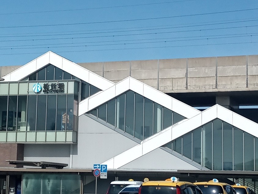 おまけに駅舎の白い三角ラインもいい味出してますよねえ。これ、きっと白山をイメージしたんだと思います。3つ連なる、まさに白山連峰ですね