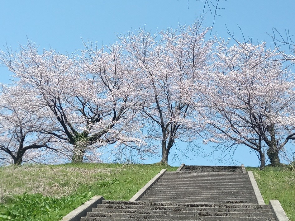 ちなみに、下の駐車場からこのマイベストスポットに行くには、この急な勾配の階段を登らなくてはなりません。おじさんおばさんとってはハーハーゼーゼーですが、考えてみればこの階段を日常的に上り下りするのは、二十歳前後の若者なので、なにも心配いらんですね。