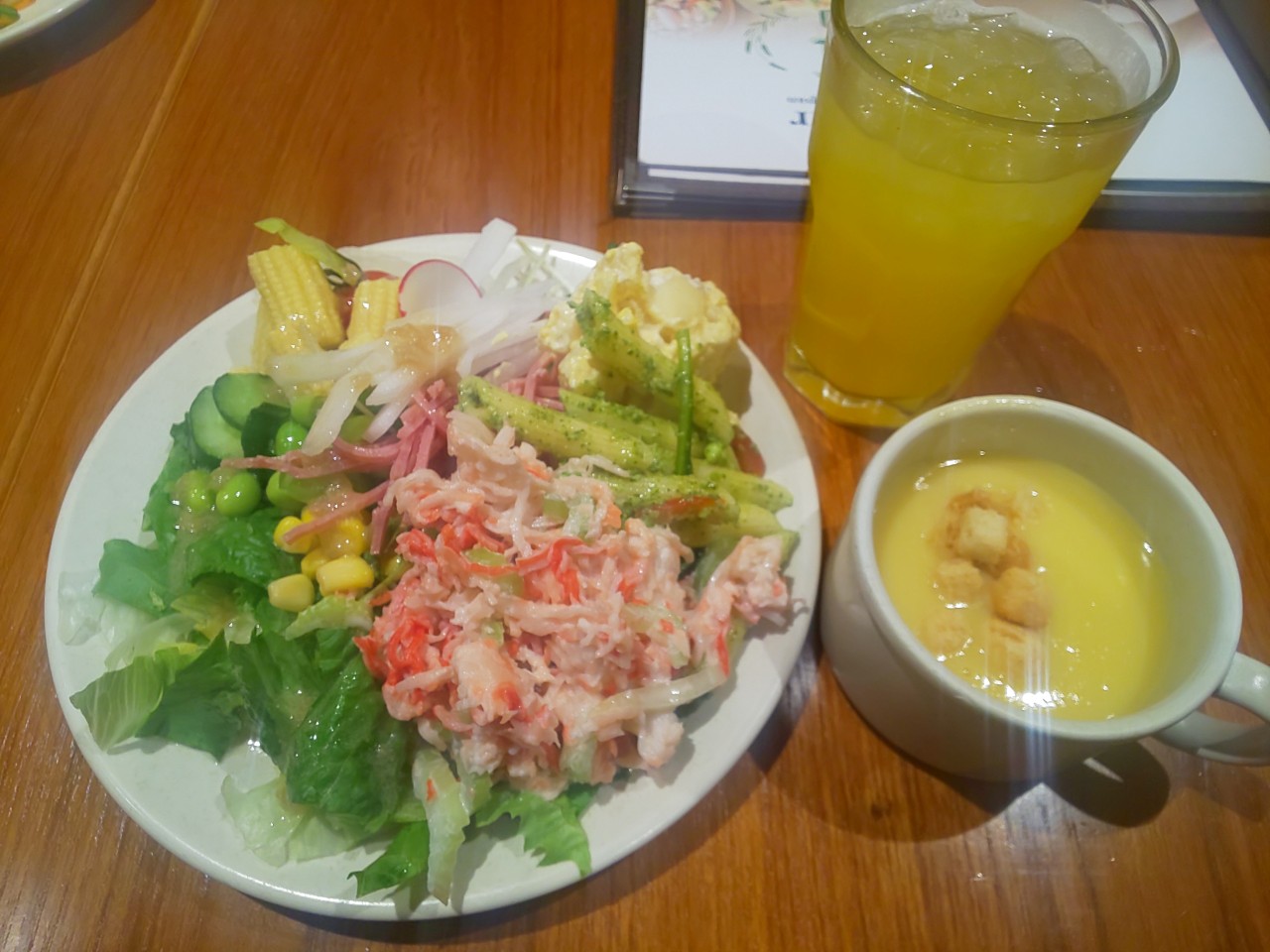 今日もまた山盛りのカニカマサラダを何度もおかわりして、サラダバーを堪能させていただいた。