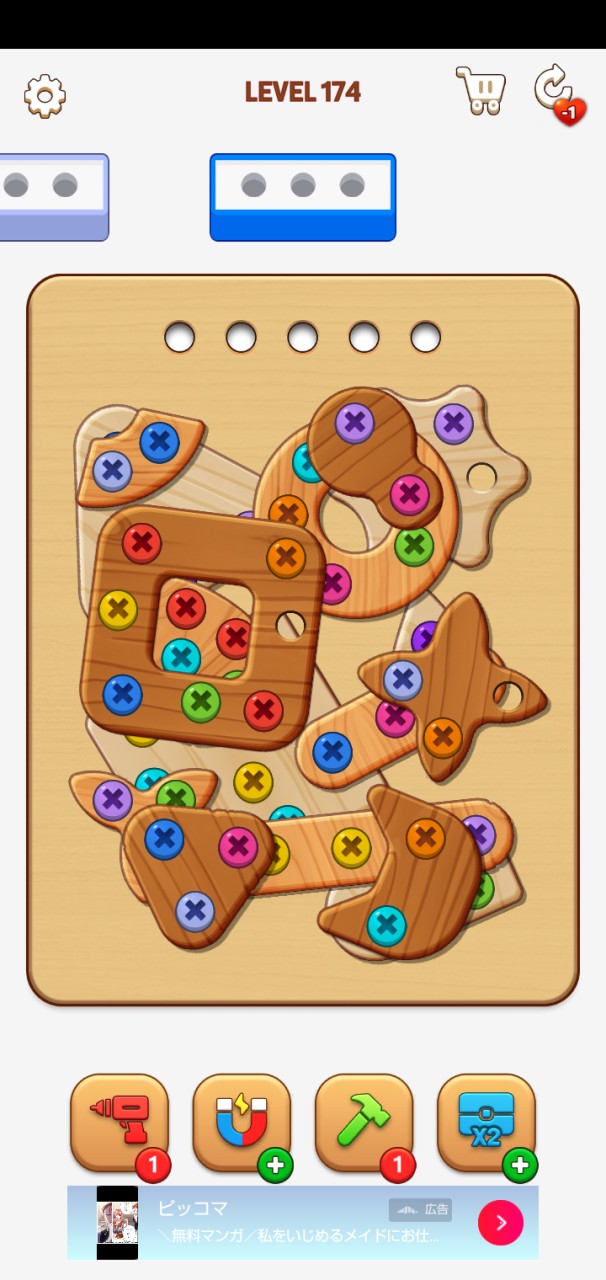 ただ、失敗する毎に♡が減って、五回失敗すると次にリトライ出来るまでに30分待つ必要があります。課金で解決できますが、そこまでしたくない…。