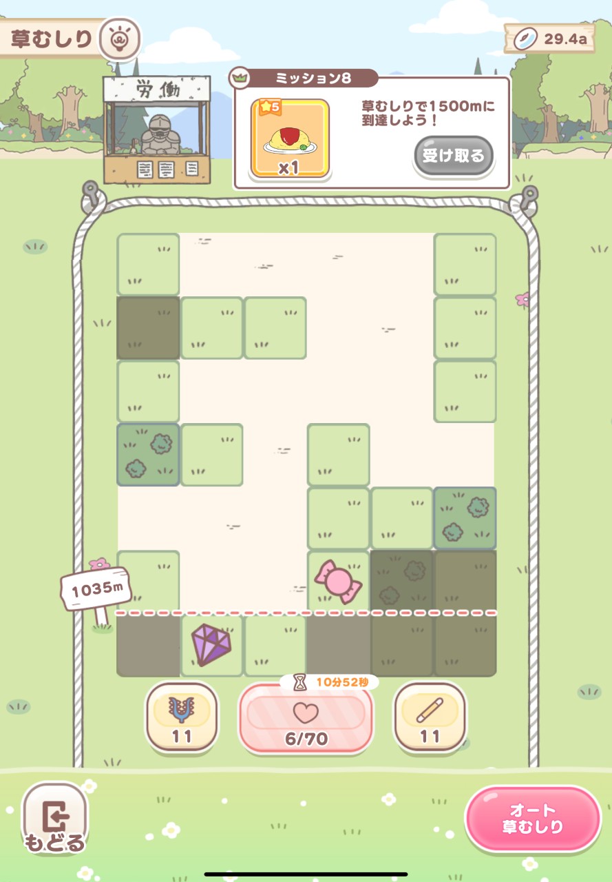 行動回数が許す限り、画面下方向へと草をむしり続けるのです。