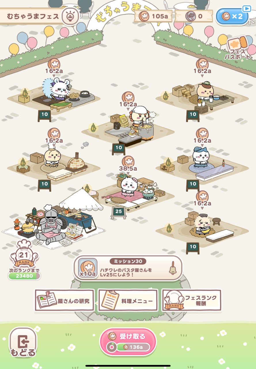 で、プレイヤーが出来る事は、『ブースにキャラクターを配置する』『料理のレベルを上げる』『ブースのレベルを上げる』の3つのみです。