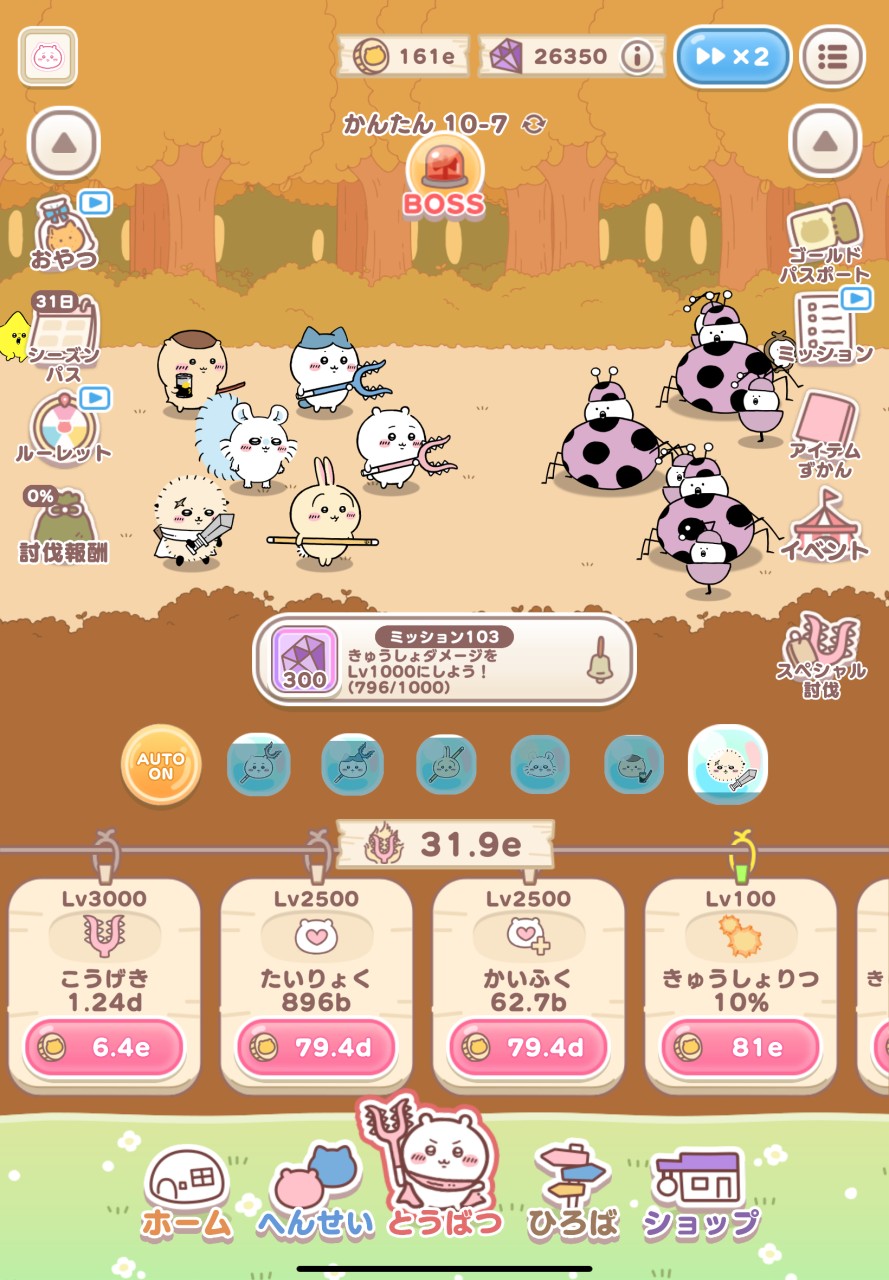 頑張ればちいかわたちの衣装が手に入る…訳でもなく。ボスを倒して強くなった果てに何か…がある訳でもなく。ちいかわたちのマンガやアニメで描かれていないオリジナルストーリー…もある訳なく。