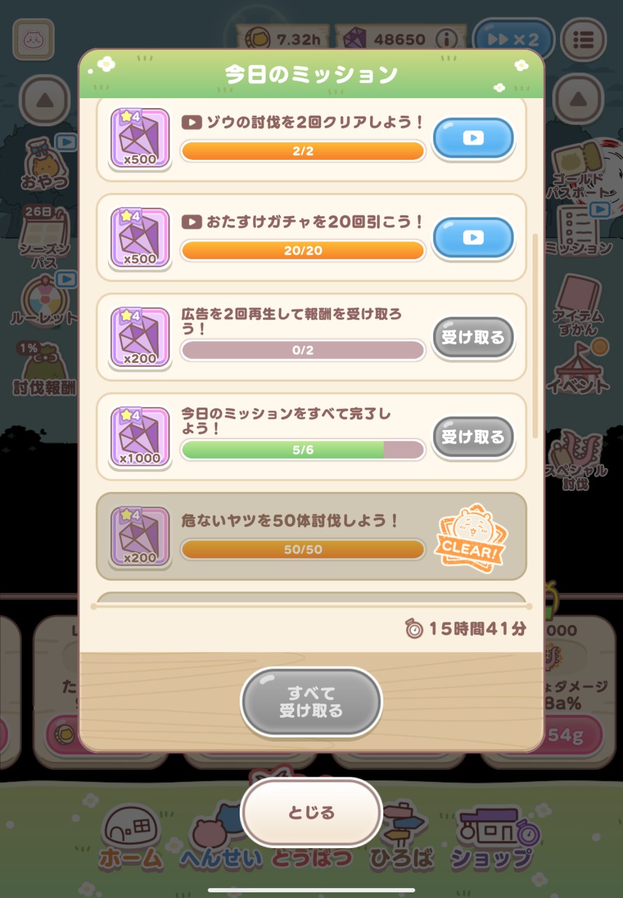 広告見ればボーナス…というシステム自体は珍しくないのですが、デイリークエストのクリアに広告必須は酷すぎて驚きました…。