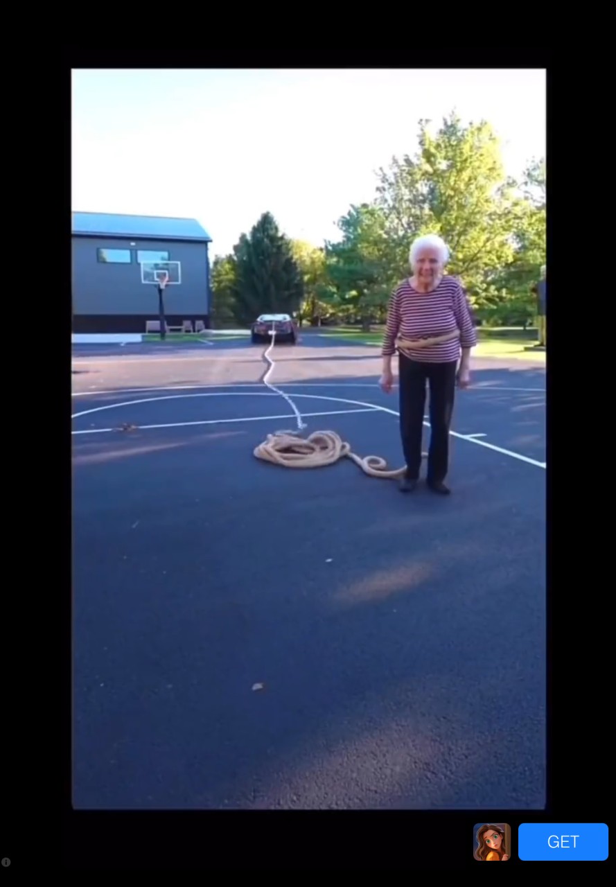 …と思ったら、実はロープは途中で切れてて、おばあちゃんニッコリ。の、次の瞬間――