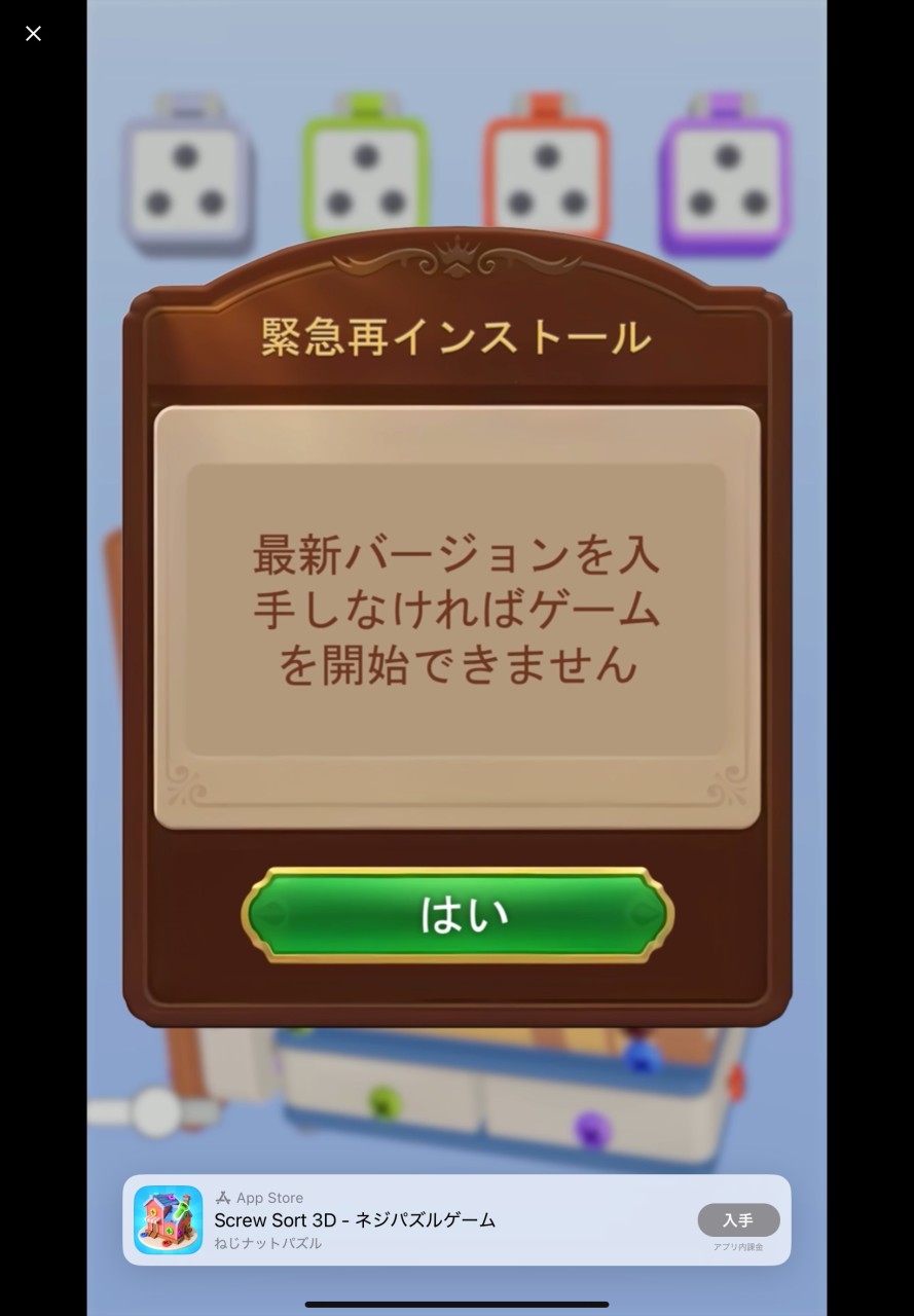 ガチめの詐欺です。何がかというと、これと画面構成がよく似たネジを外すゲームをプレイ中に、この広告が出てくるからです。