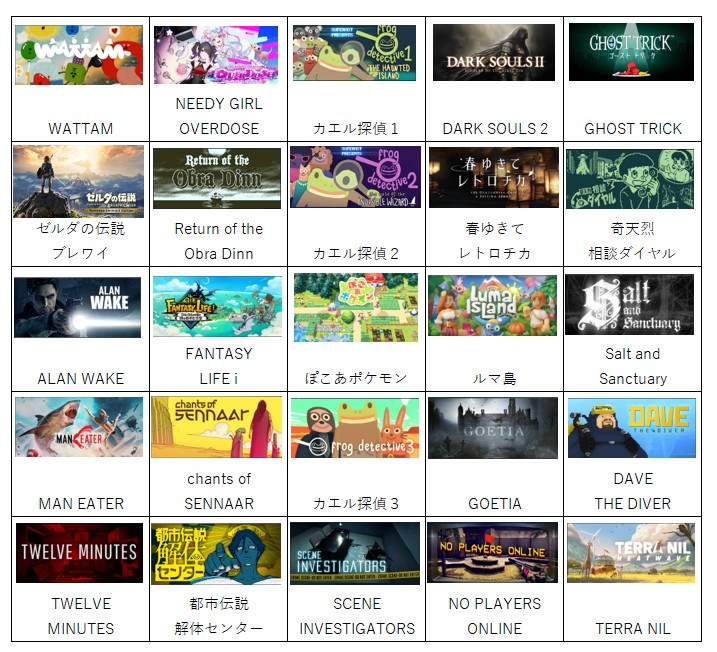 ゼルダとぽこあポケモンの2タイトルがSwitch2で、他は全部Steamで購入したPCゲーになります。