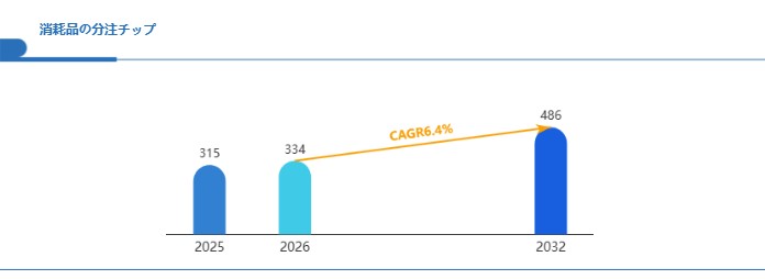 Global Reports調査チームの最新レポート「グローバル消耗品の分注チップ市場規模、主要企業シェア、ランキング分析レポート【2026年版】」によると、2026年の334百万米ドルから2032年には486百万米ドルに成長し、2026年から2032年の間にCAGRは6.4%になると予測されています。