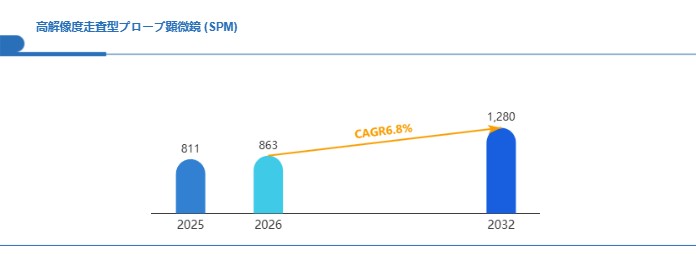 Global Reports調査チームの最新レポート「グローバル高解像度走査型プローブ顕微鏡 (SPM)市場規模、主要企業シェア、ランキング分析レポート【2026年版】」によると、2026年の863百万米ドルから2032年には1280百万米ドルに成長し、2026年から2032年の間にCAGRは6.8%になると予測されています。