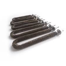 ストレートフィンチューブヒーターとは、直線状のチューブ外周にフィン(放熱板)を取り付けることで伝熱面積を大幅に拡大し、気体や液体の加熱効率を高めた熱交換機器でございます。一般に電気加熱管や蒸気・温水配管と組み合わせて使用され、空気加熱器、乾燥装置、空調設備、工業プロセス加熱など幅広い用途に適用されます。ストレートフィンチューブヒーターは構造が比較的シンプルで保守性に優れ、均一な温度分布と高い熱応答性を実現できる点が特長であり、エネルギー効率の向上や装置の小型化にも寄与する重要な加熱要素でございます。