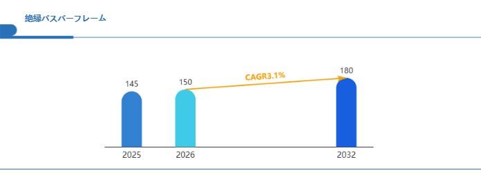 Global Reports調査チームの最新レポート「グローバル絶縁バスバーフレーム市場規模、主要企業シェア、ランキング分析レポート【2026年版】」によると、2026年の150百万米ドルから2032年には180百万米ドルに成長し、2026年から2032年の間にCAGRは3.1%になると予測されています。