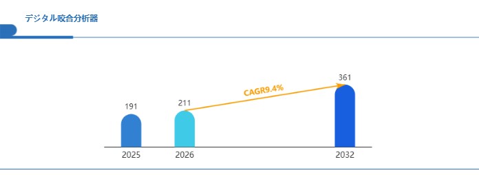 Global Reports調査チームの最新レポート「グローバルデジタル咬合分析器市場規模、主要企業シェア、ランキング分析レポート【2026年版】」によると、2026年の211百万米ドルから2032年には361百万米ドルに成長し、2026年から2032年の間にCAGRは9.4%になると予測されています。