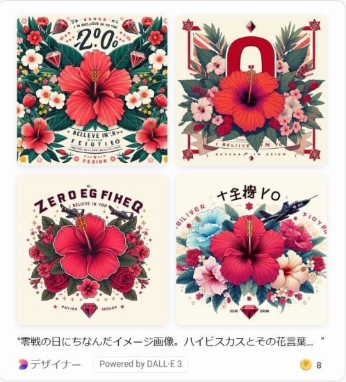 AIのDesignerに描いてもらいました。私の手では到底描けないような、華々しい美しさがその絵にはあった。機会美しい零戦が、空を駆け抜けているような感覚を受けた。自分の描いた絵とは全く次元が違うものだった。
