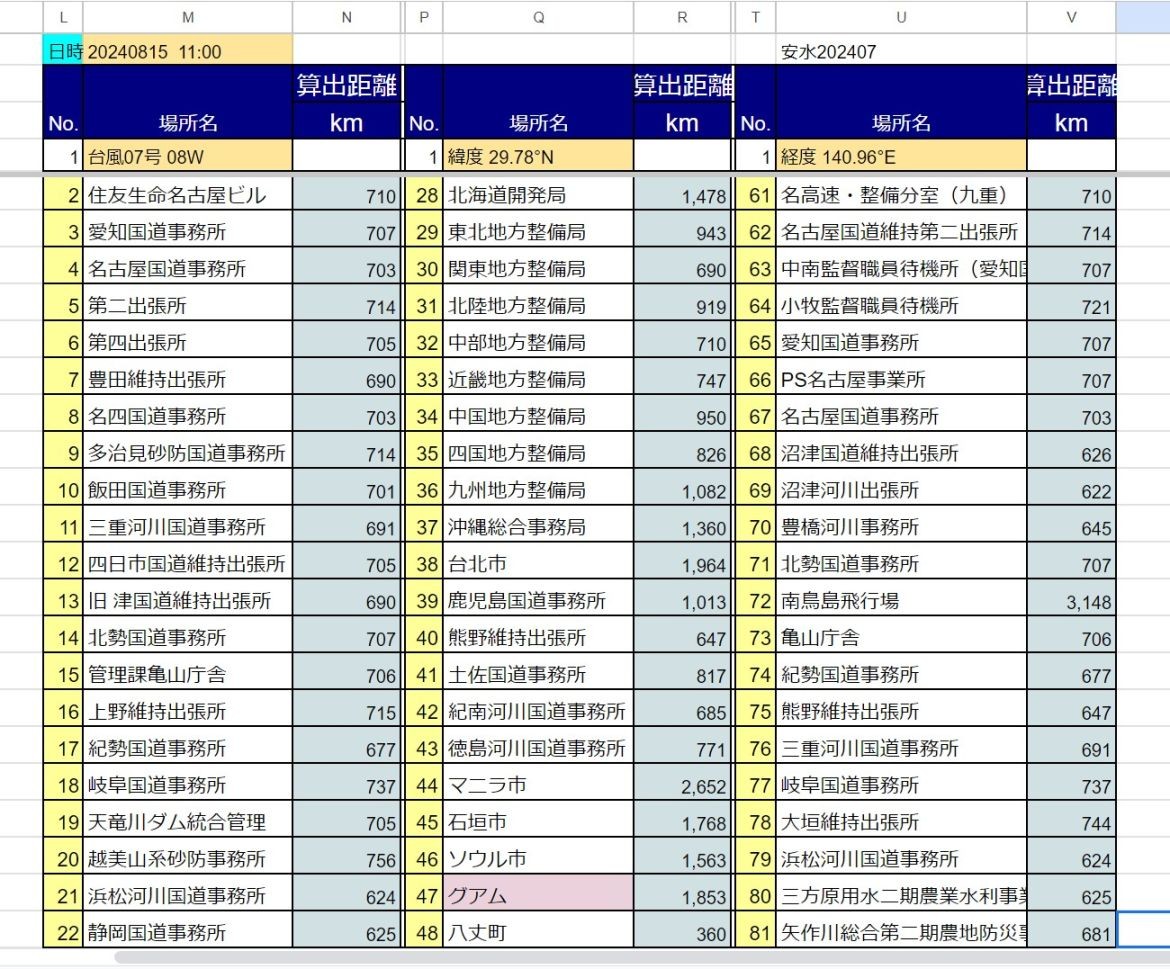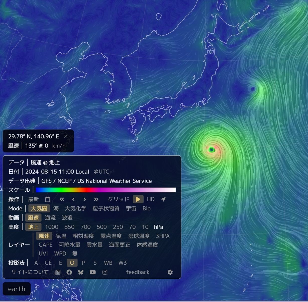 台風7号 8月15日 11時現在 earthから