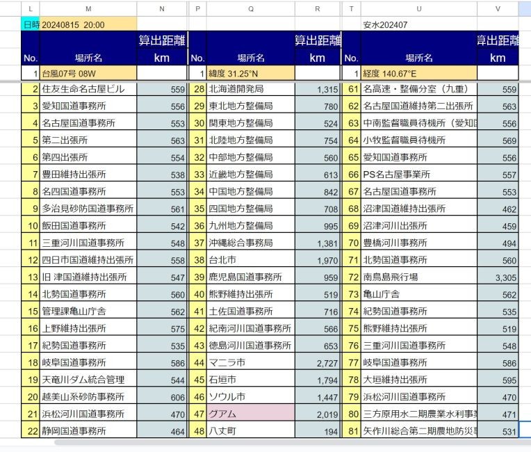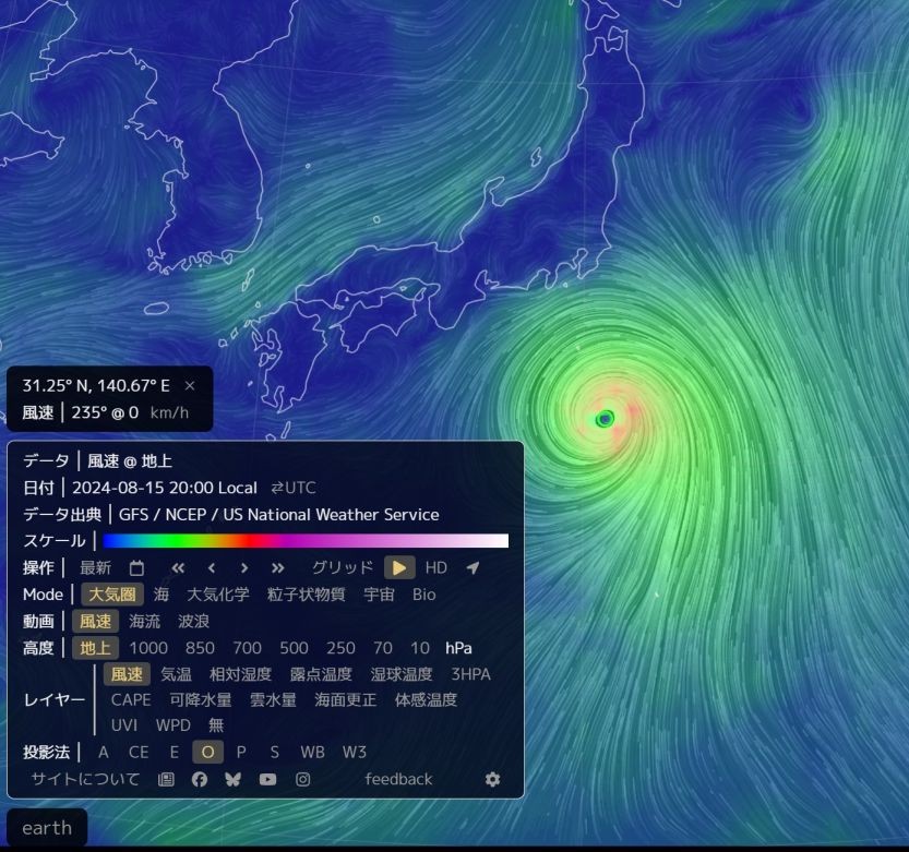 台風7号 8月15日 20時現在 earthから