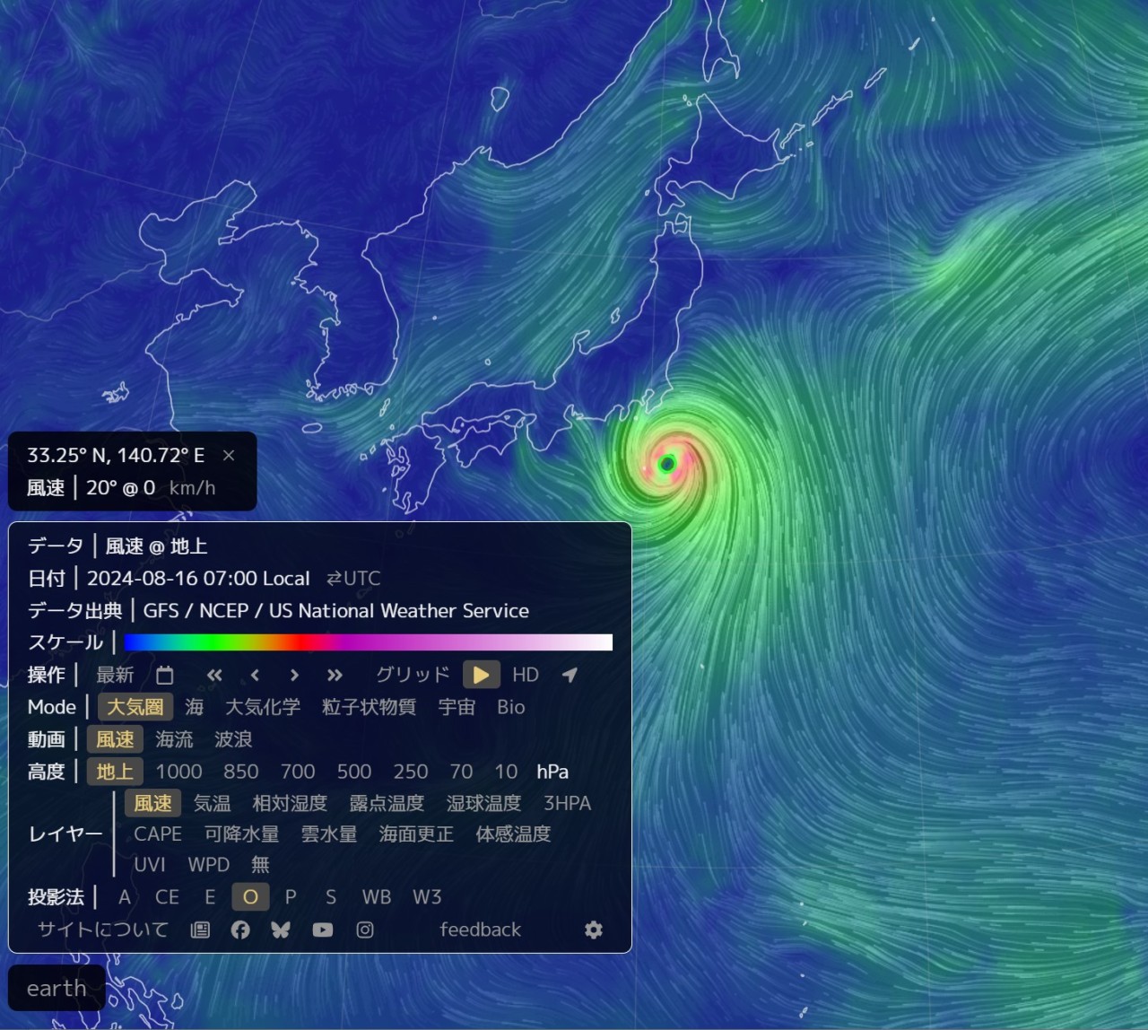 台風7号 8月16日 07時現在 earthから