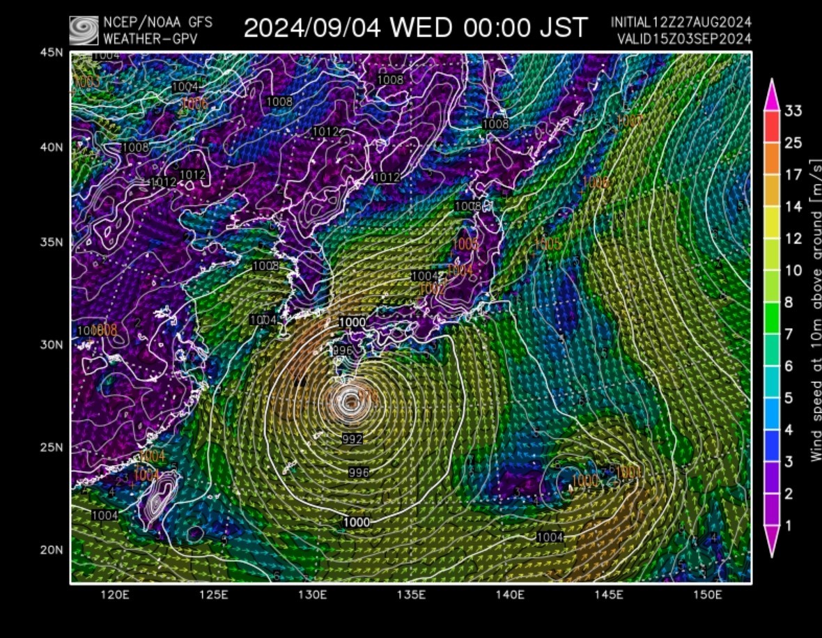 台風10号は9/4頃まで、九州他方に??