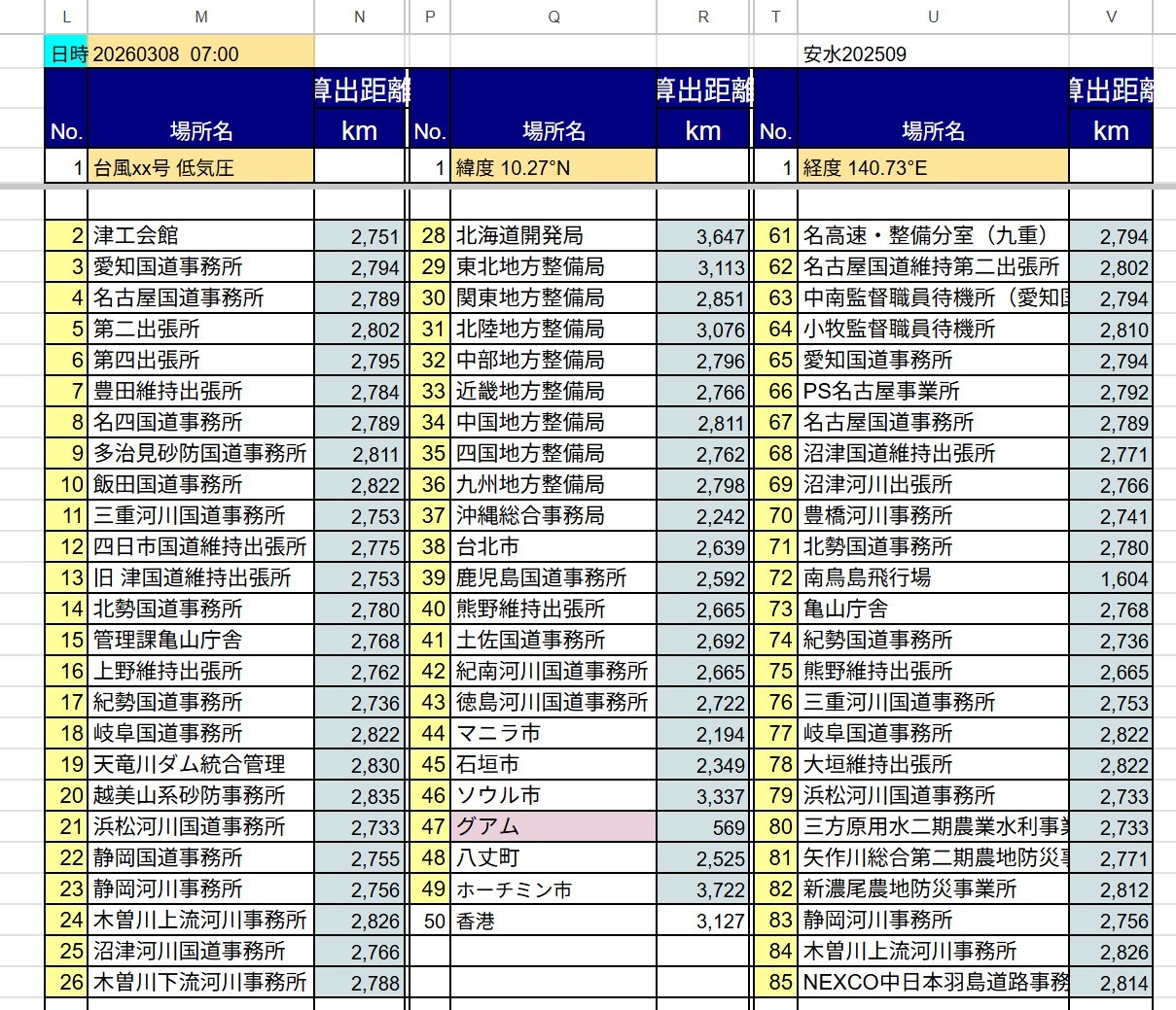 試験 低気圧位置情報 4/2 05時現在 https://x.gd/mO74D +++++ 低気圧中心と登録地点の 距離別一覧 +++++ …