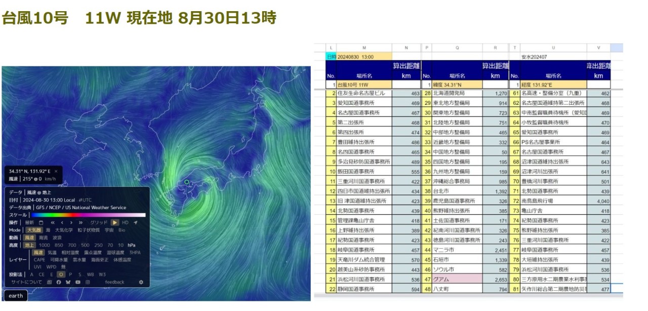 台風10号 11W 現在地 8月30日13時