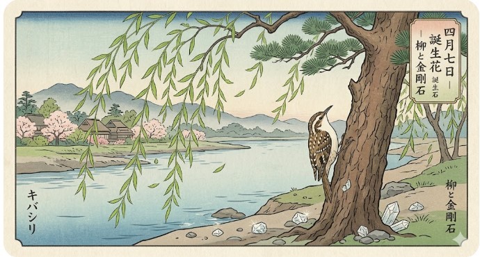 細い枝を垂らす やなぎの芽吹き