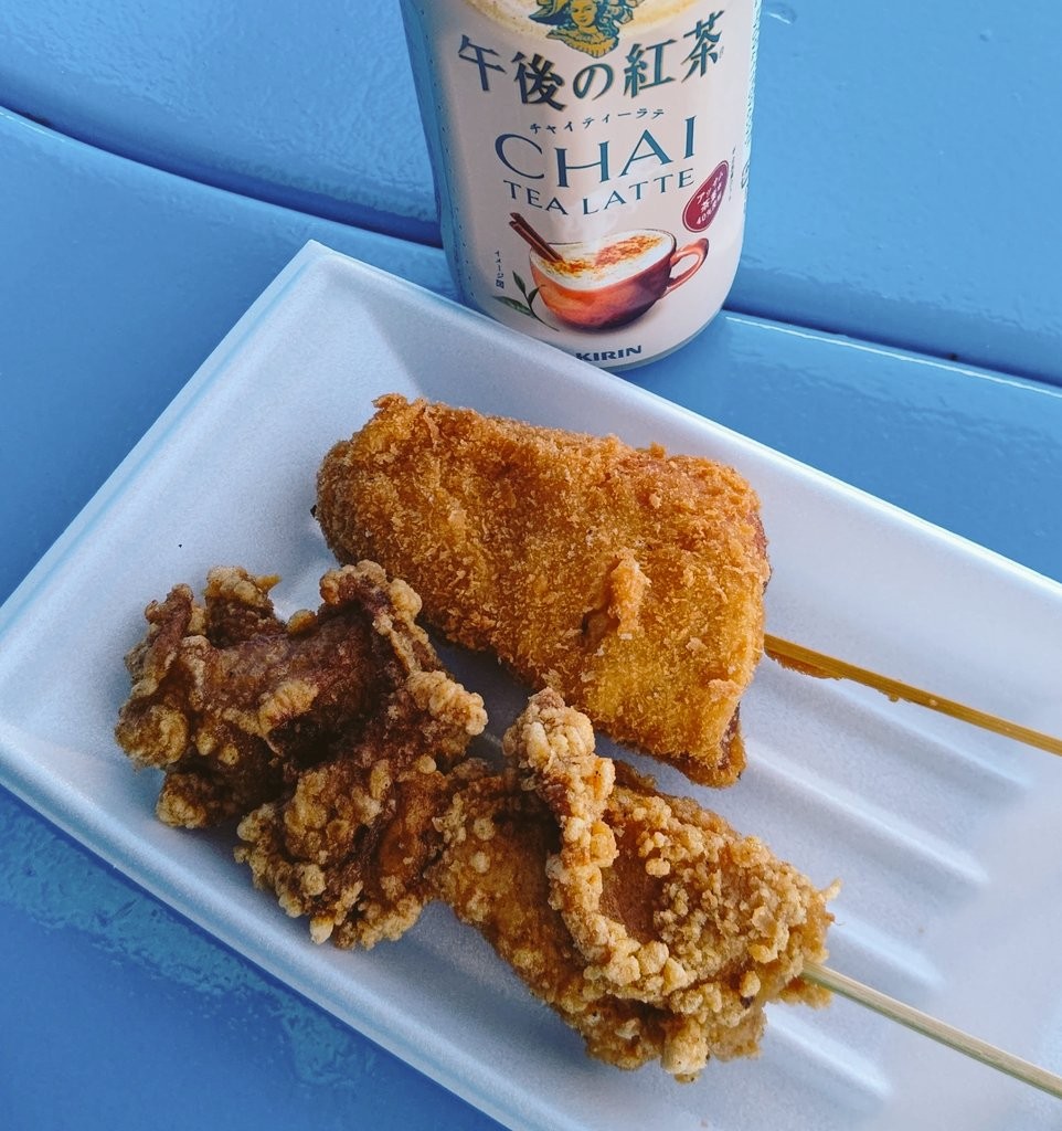 スタンド観戦しながら気軽につまめるメニューがいっぱいあるんだけど、その中でもおすすめなのが寿屋さん唐揚げ串。