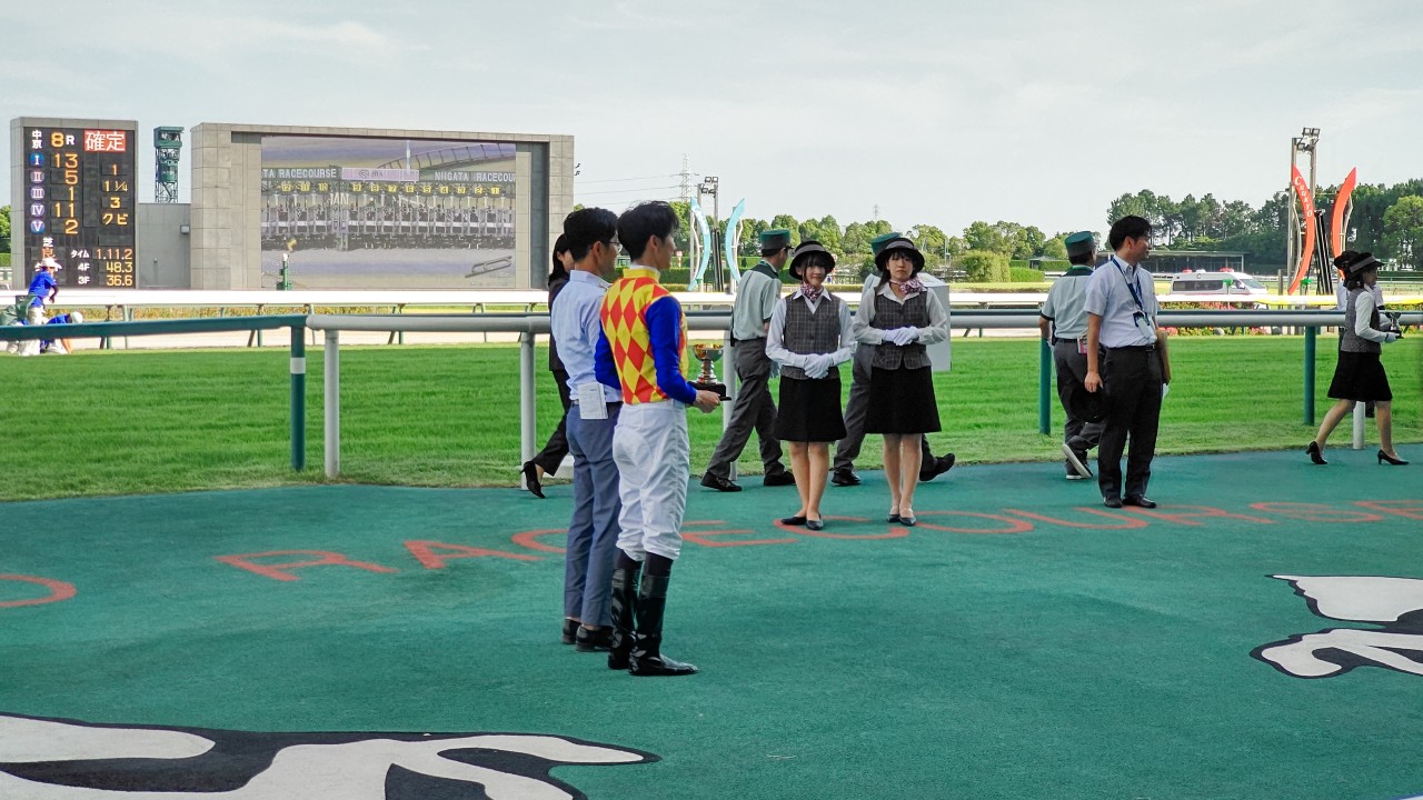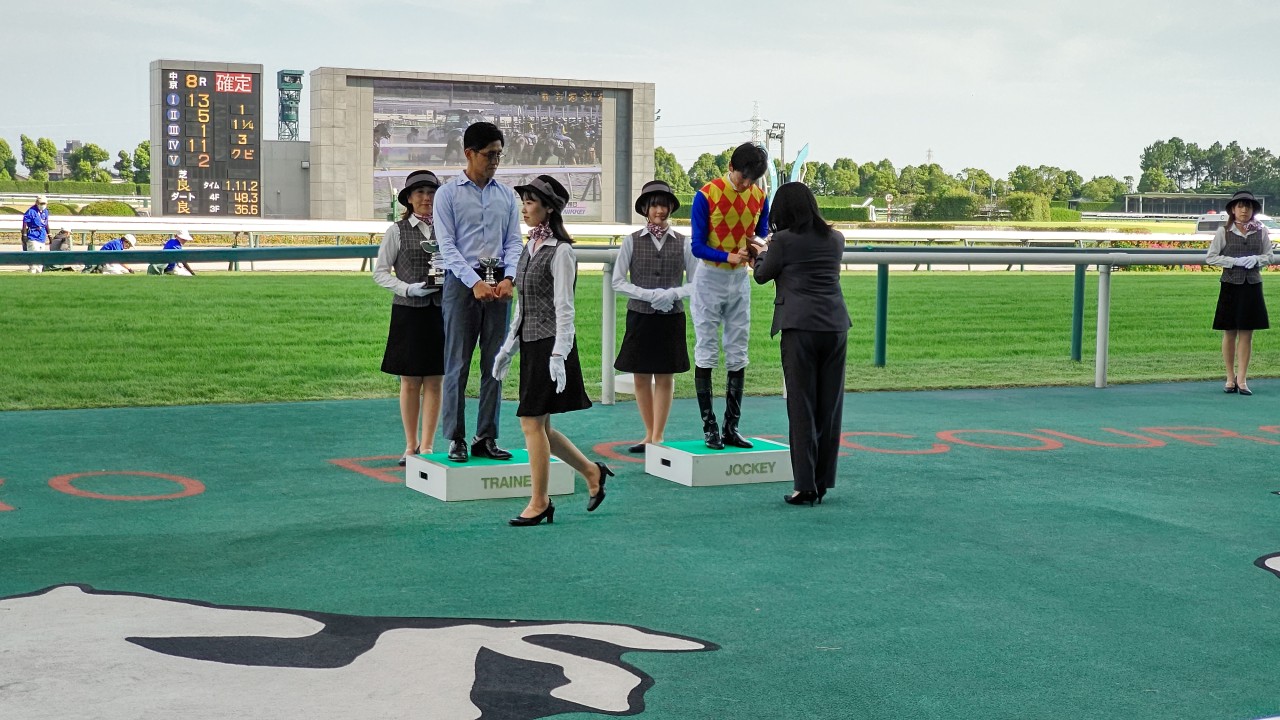 そろそろ帰ろうかと思った矢先にレース(8Rだったかな)の表彰式と口取りがあったものだからそれも見届けてきました。