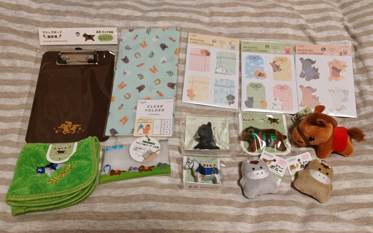 あと馬券やマークシートを入れるのにいいサイズになってたりするクリアフォルダーとかマークシート記入に便利そうなクリップボードとかの実用系もあって、あちらの開発担当に競馬ファンがいるのかな…なんて思ったり。