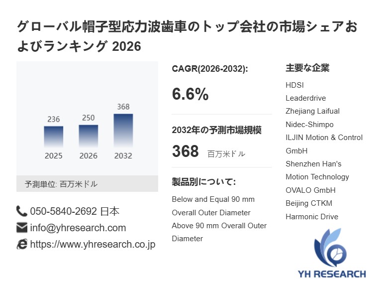 上記の図表/データは、YHResearchの最新レポート「グローバル帽子型応力波歯車のトップ会社の市場シェアおよびランキング 2026」から引用されています。