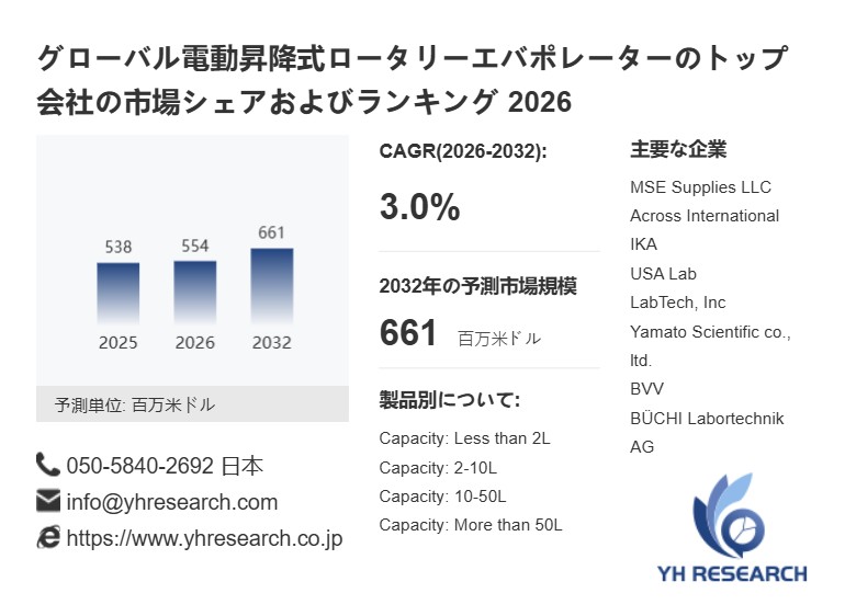 本記事は、YH Researchが発行したレポート「グローバル電動昇降式ロータリーエバポレーターのトップ会社の市場シェアおよびランキング 2026」 を紹介しています。