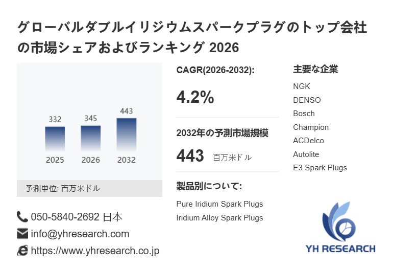 上記の図表/データは、YHResearchの最新レポート「グローバルダブルイリジウムスパークプラグのトップ会社の市場シェアおよびランキング 2026」から引用されています。