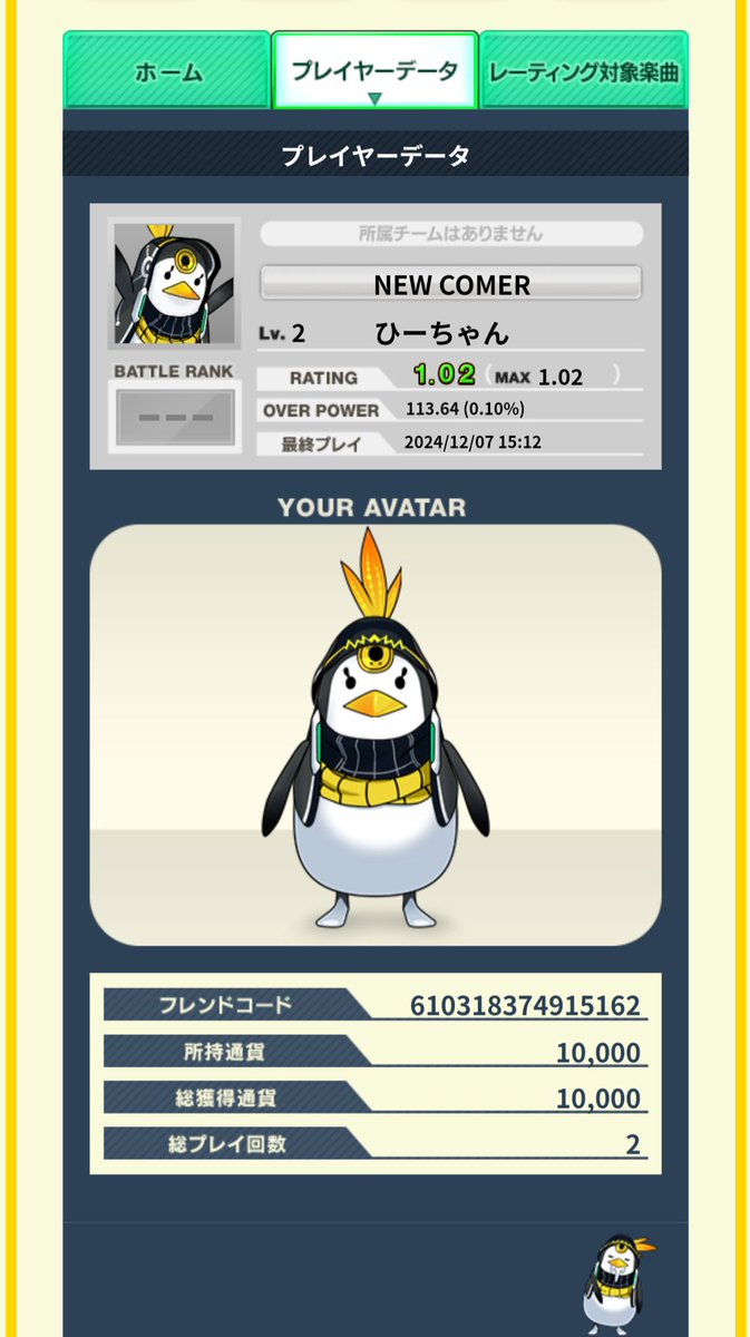 チュウニズムネットに登録して後にひーちゃんに変更しました。