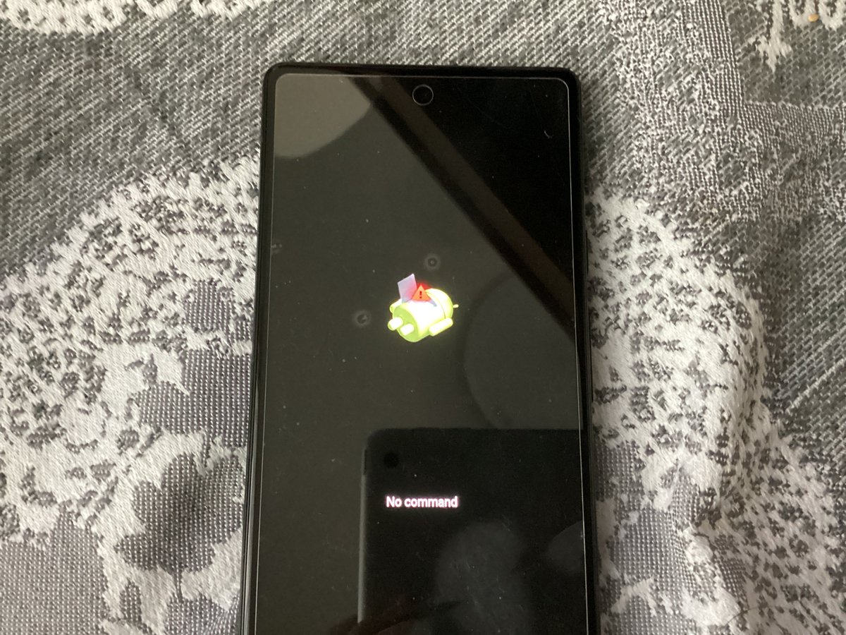 スマホの電源を切った状態で、電源ボタン + 音量下げる を同時押しすると以下のような画面が表示されます。 充電がない場合は充電しましょう。