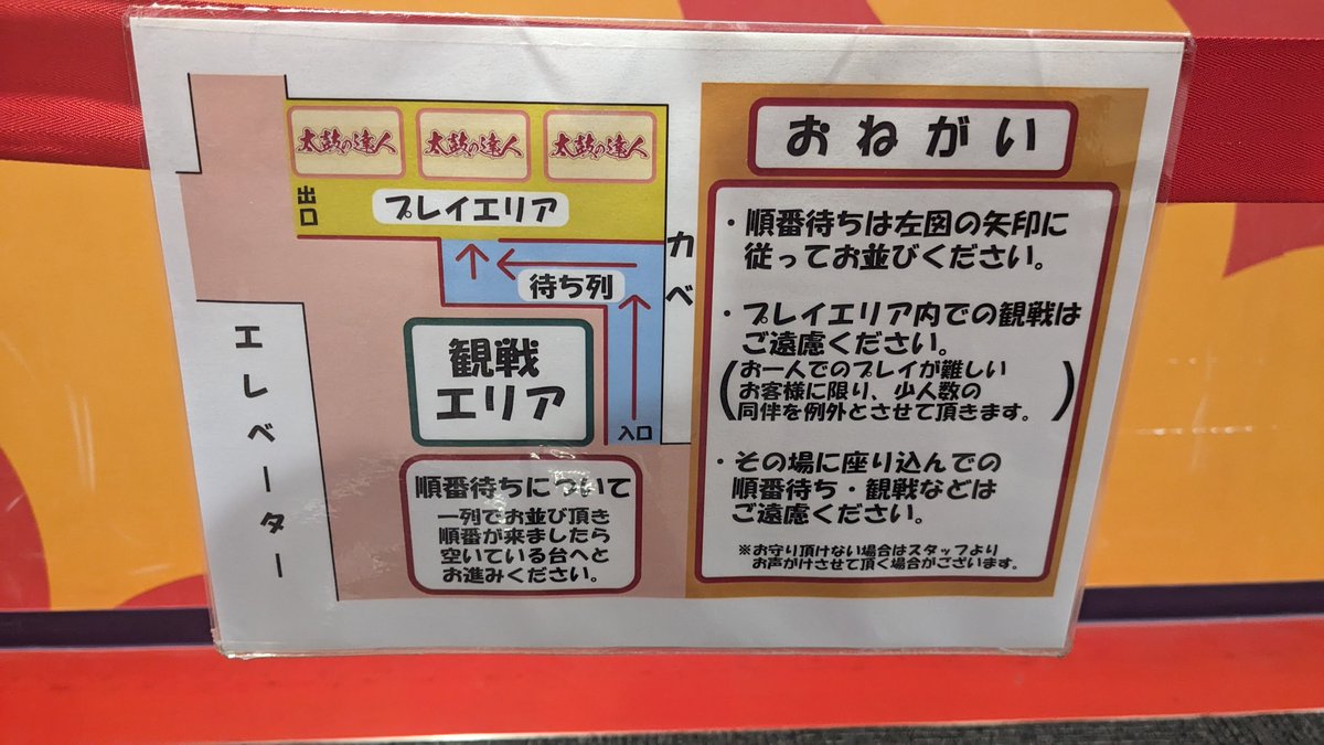 3台並んでる太鼓の達人の上にもデカい貼り紙がありました。