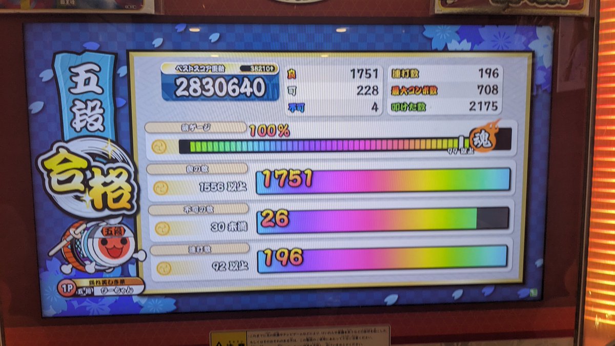 譜面も何となく覚えて余裕を持って金合格できました✨