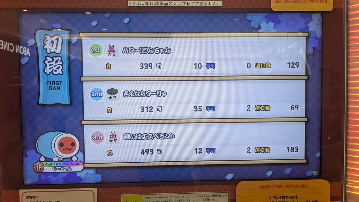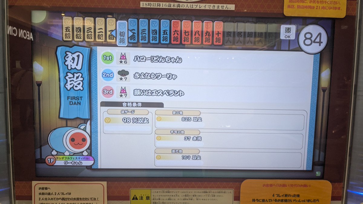 初段なので金枠(フルコンボ)金合格したかったけど…