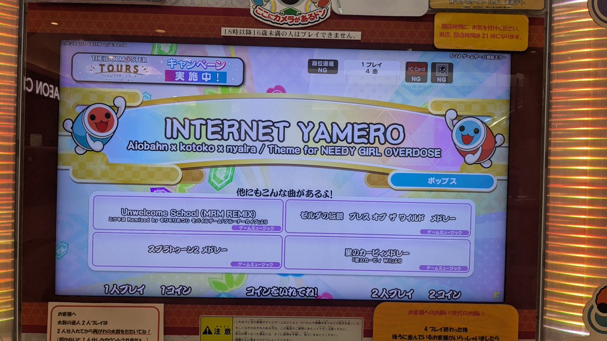 先日 太鼓の達人、いつものホーム台で遊ぼうとしたんですが、稀に見るエラー。