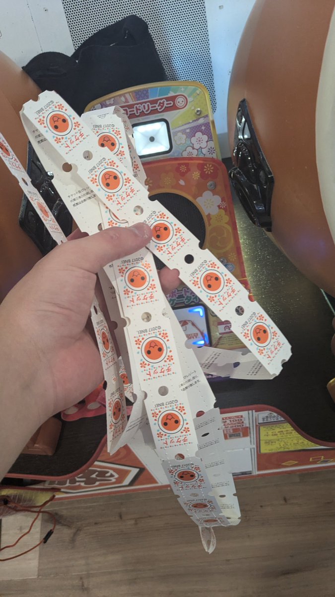 太鼓の達人の場合、100円遊戯で10枚分のチケットが発券されます。