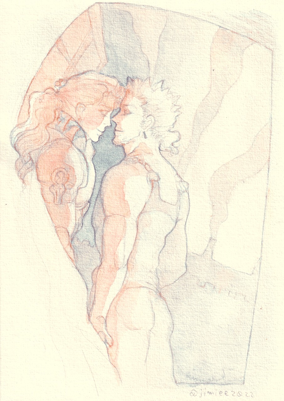 8/13(サンプル)8/11その2の水彩ラフを加工したサンプル。本番はカラー版を出す予定です。