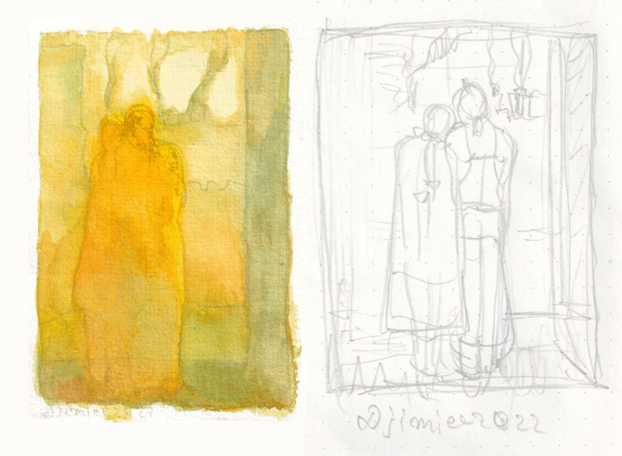 8/9その1(A4水彩描きます。のラフ①)