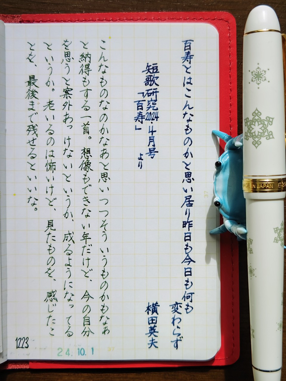 [今日の短歌/横田英夫]百寿とはこんなものかと思い居り昨日も今日も何も変わらず