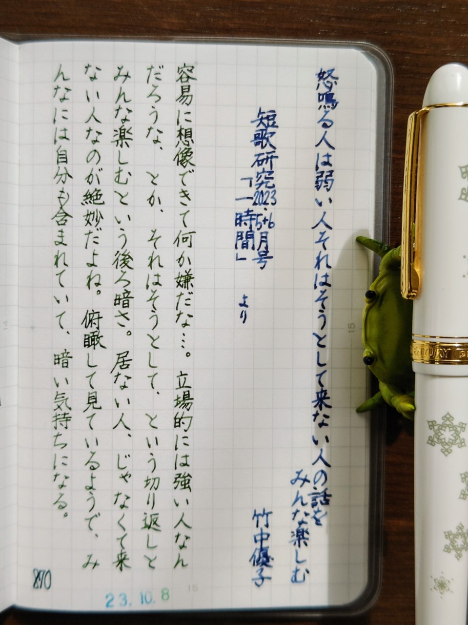[今日の短歌/竹中優子]怒鳴る人は弱い人それはそうとして来ない人の話をみんな楽しむ