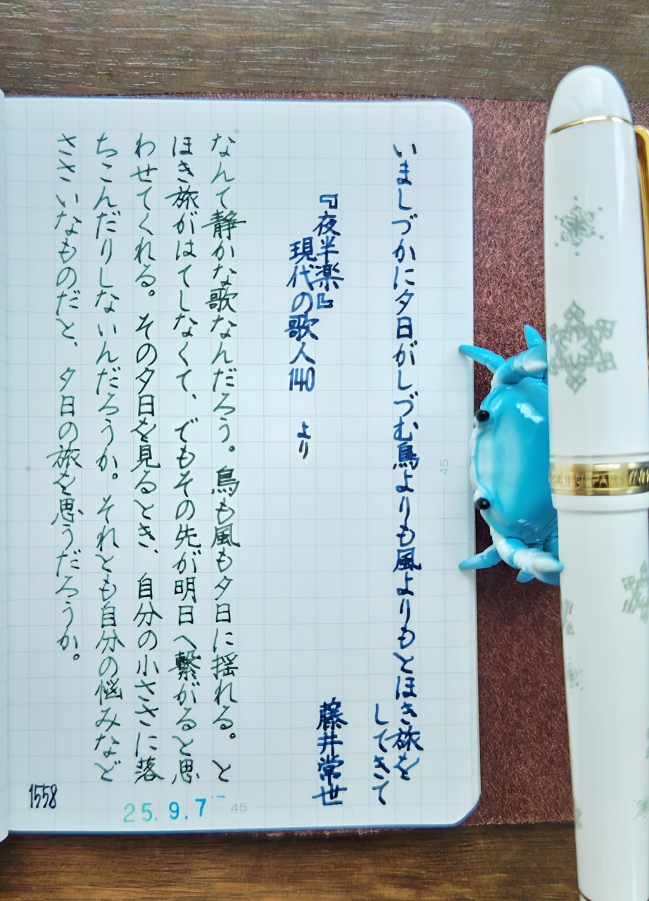 いましづかに夕日がしづむ鳥よりも風よりもとほき旅をしてきて/藤井常世